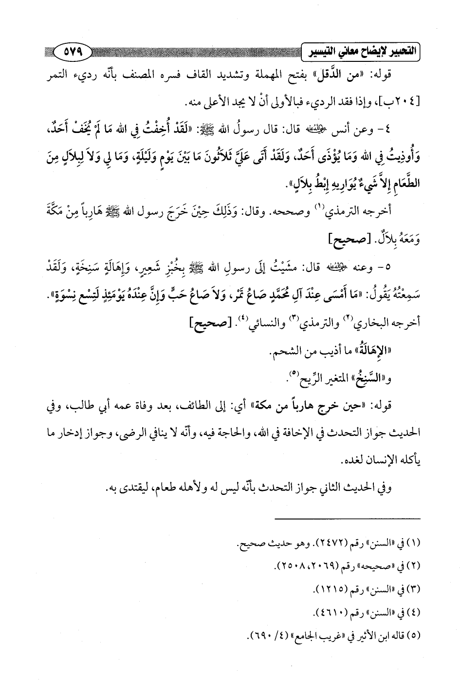 4 - وعن أنس - رضي الله عنه - قال: قال رسولُ الله - صلى الله عليه وسلم -: "لَقَدْ أُخِفْتُ فِي الله مَا لَمْ يُخَفْ أَحَدٌ، وَأُوذِيتُ فِي الله وَمَا يُؤْذَى أَحَدٌ، وَلَقَدْ أَتَى عَلَيَّ ثَلاَثُونَ مَا بَيْنَ يَوْمٍ وَلَيْلَةٍ، وَمَا لِي وَلاَ لِبِلاَلٍ مِنَ الطَّعَامِ إِلاَّ شَيءٌ يُوَارِيهِ إِبْطُ بِلاَلٍ".