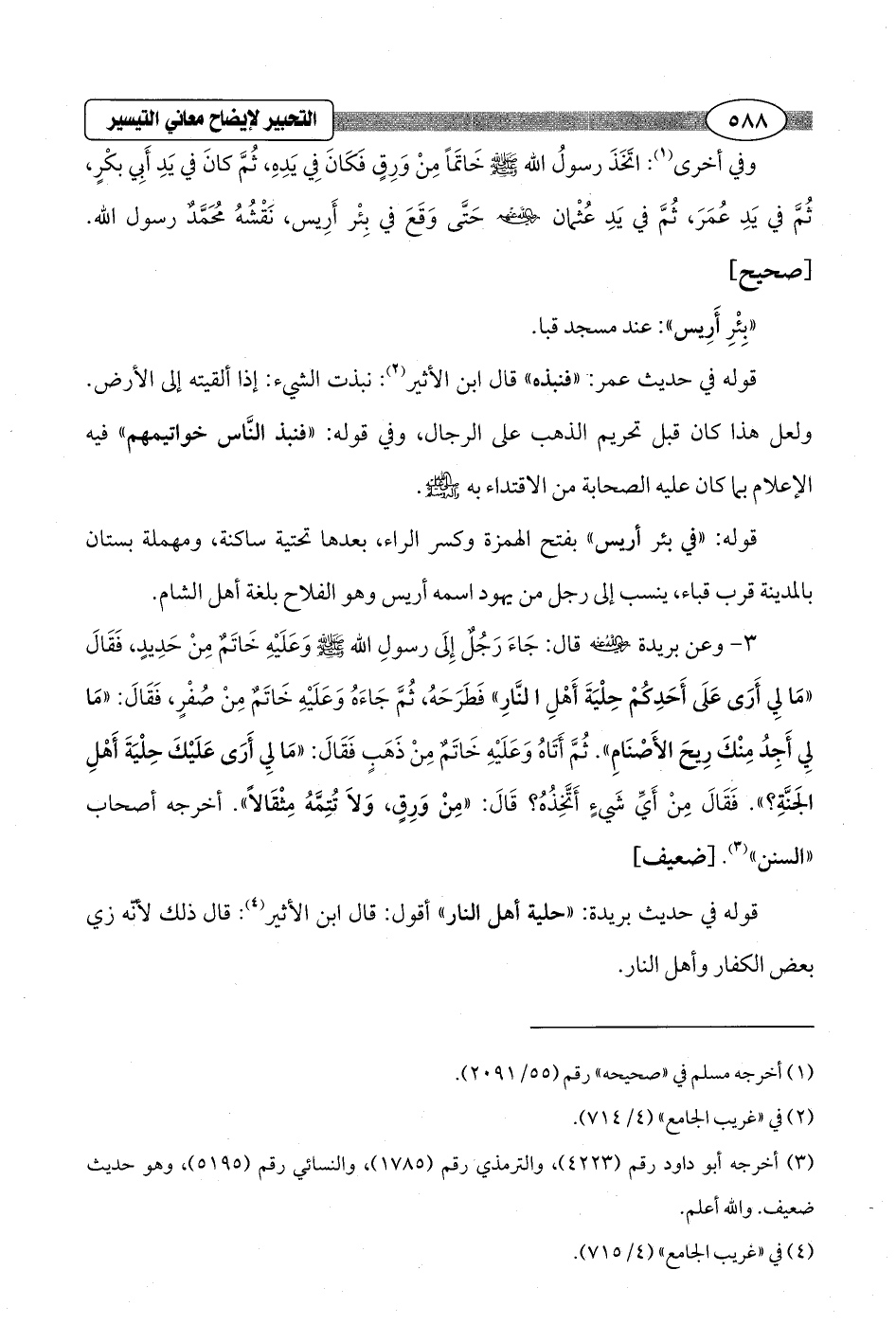 قوله في حديث بريدة: "حلية أهل النار" أقول: قال ابن الأثير (¬4): قال ذلك لأنّه زي بعض الكفار وأهل النار.