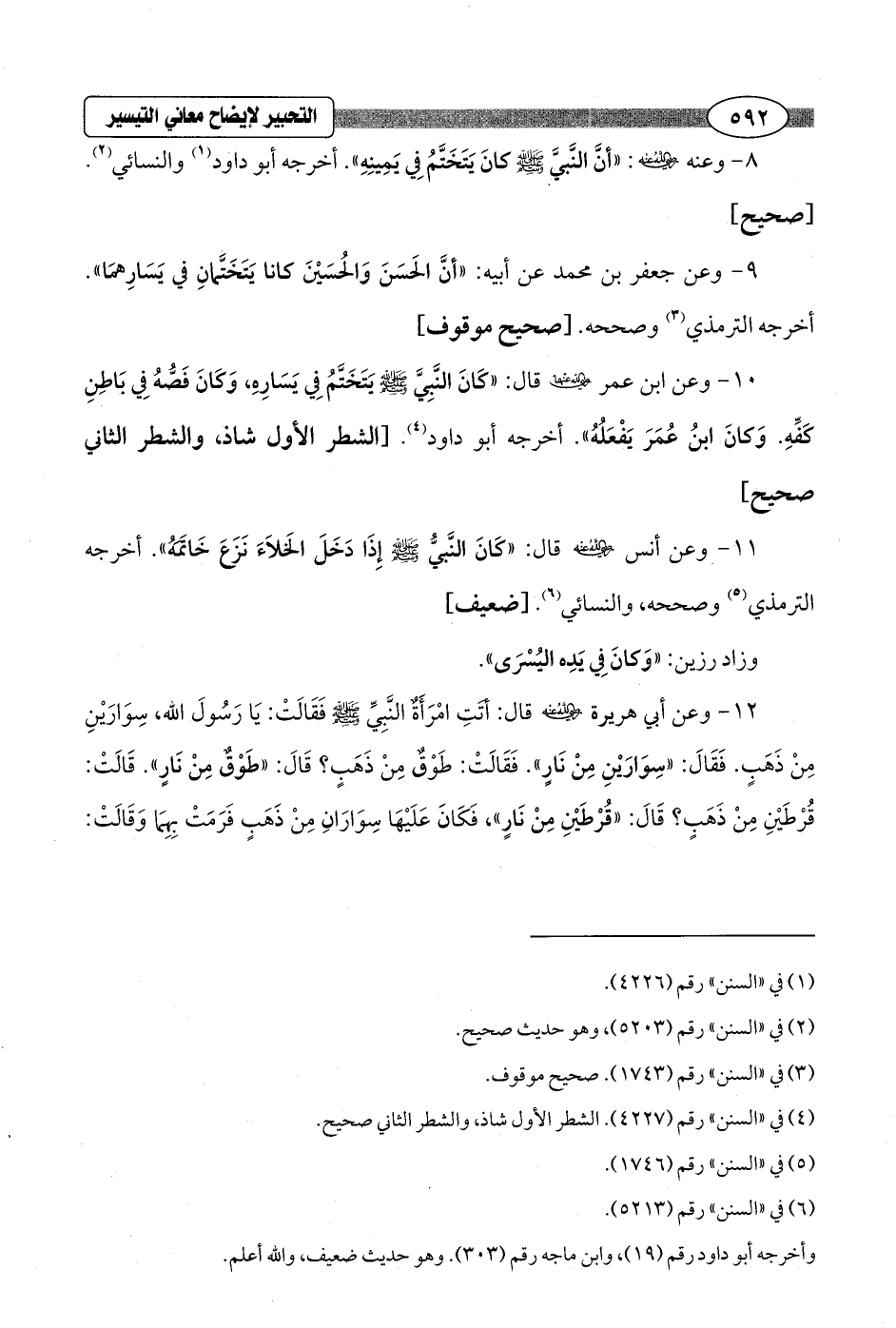9 - وعن جعفر بن محمد عن أبيه: "أنَّ الحَسَنَ وَالحُسَيْنَ كانا يَنَخَتَّمانِ في يَسَارِهمَا". أخرجه الترمذي (¬3) وصححه. [صحيح موقوف]