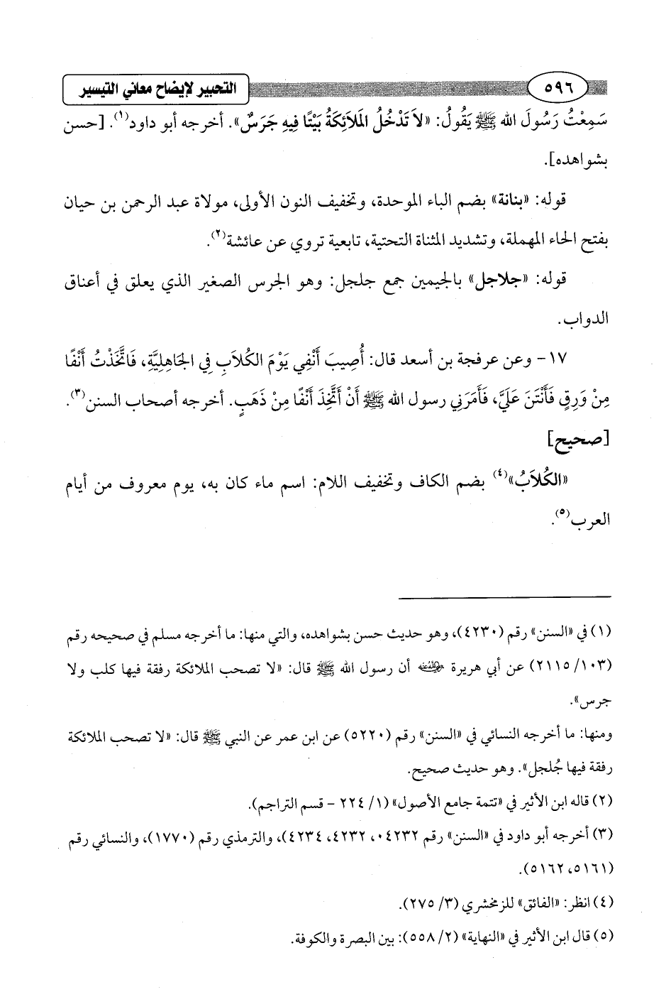 (¬1) في "السنن" رقم (4230)، وهو حديث حسن بشواهده، والتي منها: ما أخرجه مسلم في صحيحه رقم (103/ 2115) عن أبي هريرة - رضي الله عنه - أن رسول الله - صلى الله عليه وسلم - قال: "لا تصحب الملائكة رفقة فيها كلب ولا جرس".