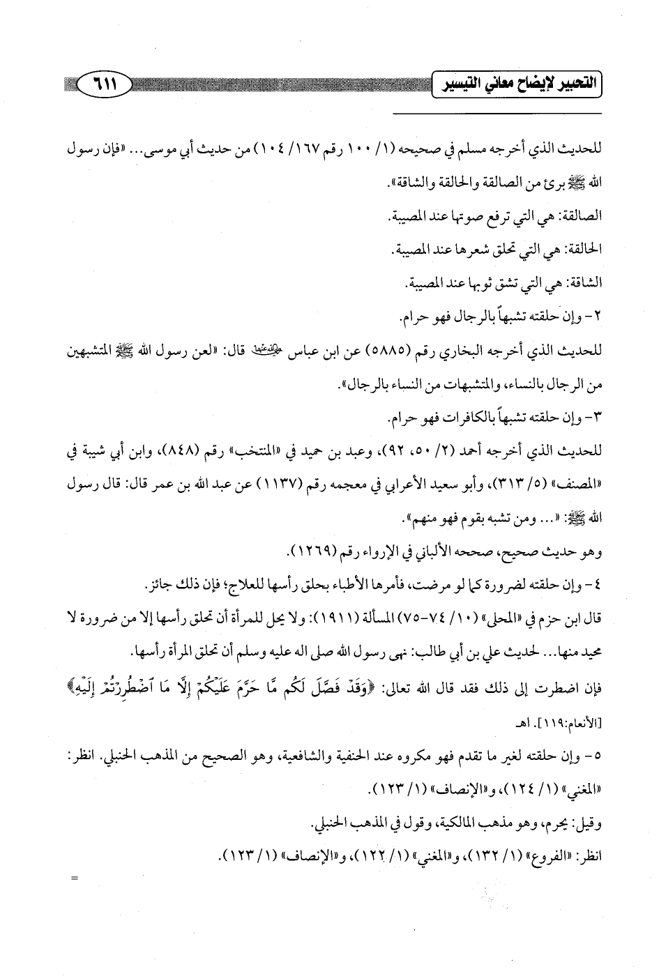 = للحديث الذي أخرجه مسلم في صحيحه (1/ 100 رقم 167/ 104) من حديث أبي موسى ... "فإن رسول الله - صلى الله عليه وسلم - برئ من الصالقة والحالقة والشاقة".