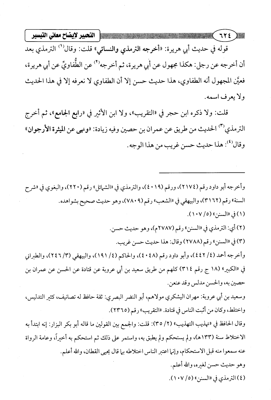 وأخرجه أحمد (4/ 442)، وأبو داود رقم (4048)، والحاكم (4/ 191)، والبيهقي (3/ 246)، والطبراني في "الكبير" (18 ج رقم 314) كلهم من طريق سعيد بن أبي عروبة عن قتادة عن الحسن عن عمران بن حصين به، والحسن مدلس وقد عنعن.