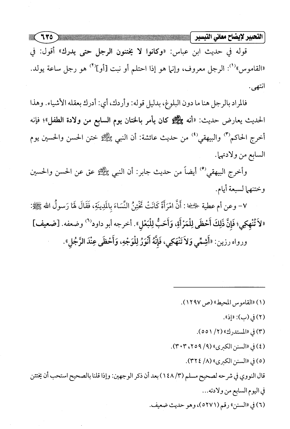 7 - وعن أم عطية - رضي الله عنها -: أَنَّ امْرَأَةً كَانَتْ تَخْتِنُ النِّسَاءَ بِالمَدِينَةِ, فَقَالَ لَهَا رَسولُ الله - صلى الله عليه وسلم -: "لاَ تُنْهِكِي؛ فَإِنَّ ذَلِكَ أَحْظَى لِلْمَرْأَةِ, وَأَحَبُّ لِلْبَعْلِ". أخرجه أبو داود (¬6) وضعفه. [ضعيف]