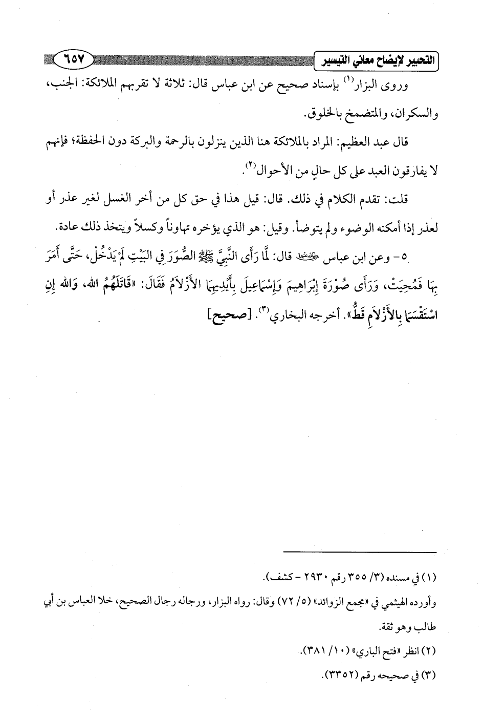 5 - وعن ابن عباس - رضي الله عنهما - قال: لمَّا رَأَى النَّبِيَّ - صلى الله عليه وسلم - الصُّوَرَ فِي البَيْتِ لَم يَدْخُلْ، حَتَّى أَمَرَ بِهَا فَمُحِيَتْ، وَرَأَى صُوْرَةَ إِبْرَاهِيمَ وَإِسْمَاعِيلَ بِأَيْدِيهِمَا الأَزْلاَمُ فَقَالَ: "قَاتَلَهُمُ الله, وَالله إِنِ اسْتَقْسَمَا بِالأَزْلاَمِ قَطُّ". أخرجه البخاري (¬3). [صحيح]