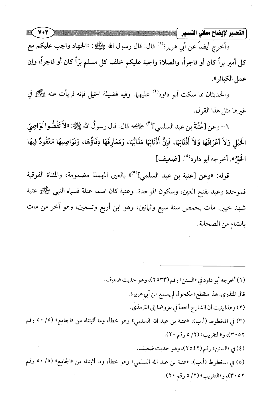 (¬5) في المخطوط (أ. ب): "عتبة بن عبد الله السلمي" وهو خطأ، وما أثبتناه من "الجامع" (5/ 50 رقم 3052)، و"التقريب" (2/ 5 رقم 20)