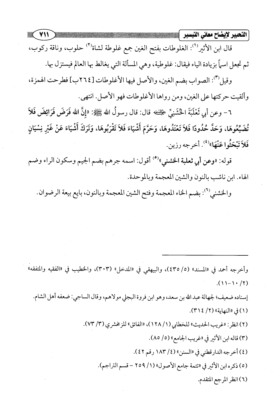 قوله: "وعن أبي ثعلبة الخشني" (¬5) أقول: اسمه جرهم بضم الجيم وسكون الراء وضم الهاء. ابن ناشب بالنون والشين المعجمة وبالموحدة.