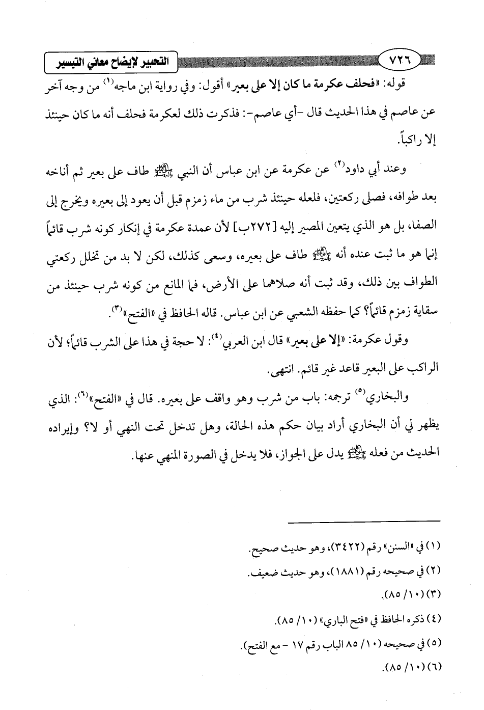 قوله: "فحلف عكرمة ما كان إلا على بعير" أقول: وفي رواية ابن ماجه (¬1) من وجه آخر عن عاصم في هذا الحديث قال - أي عاصم -: فذكرت ذلك لعكرمة فحلف أنه ما كان حينئذ إلا راكباً.