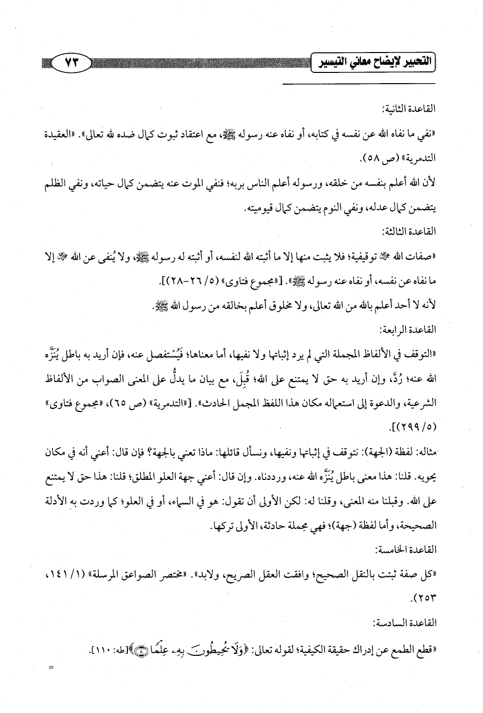 "نفي ما نفاه الله عن نفسه في كتابه، أو نفاه عنه رسوله - صلى الله عليه وسلم -، مع اعتقاد ثبوت كمال ضده لله تعالى". "العقيدة التدمرية" (ص 58).