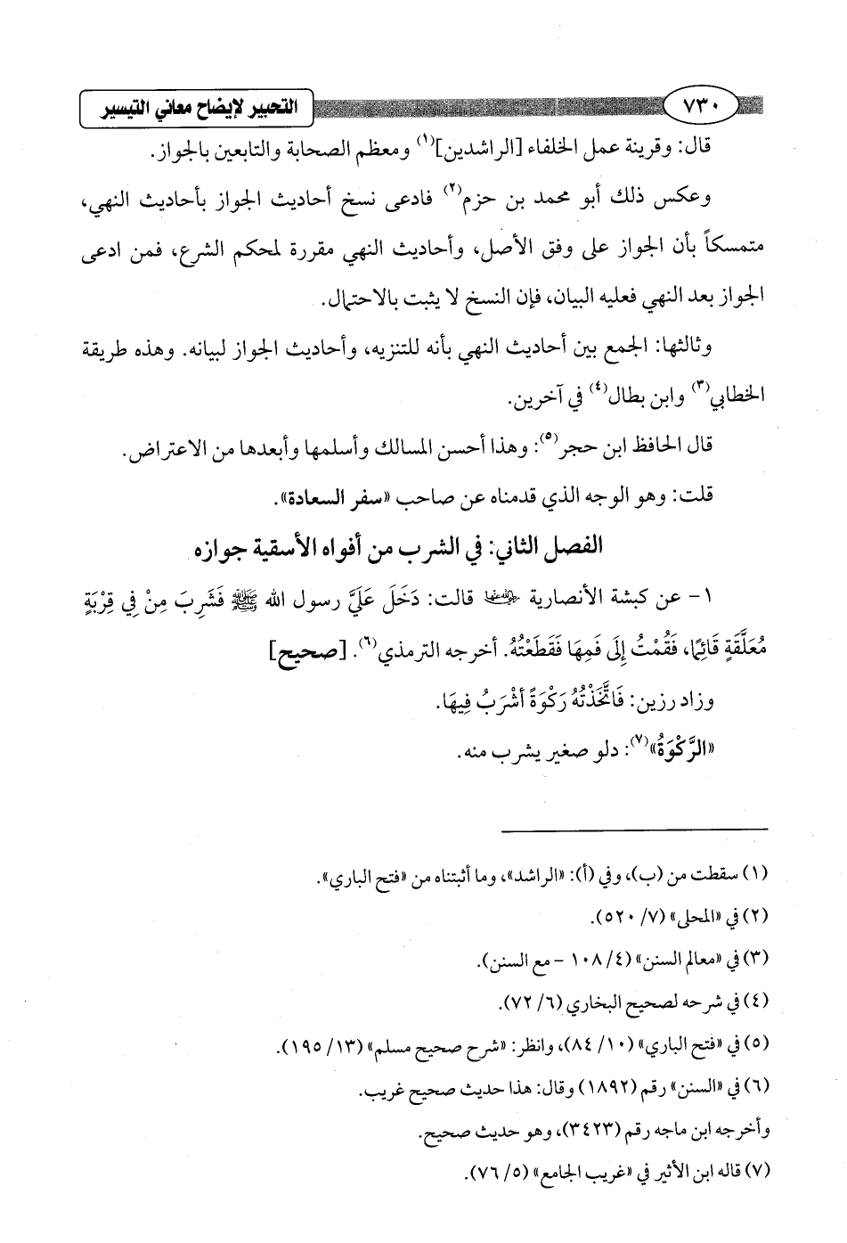 الفصل الثاني: في الشرب من أفواه الأسقية جوازه