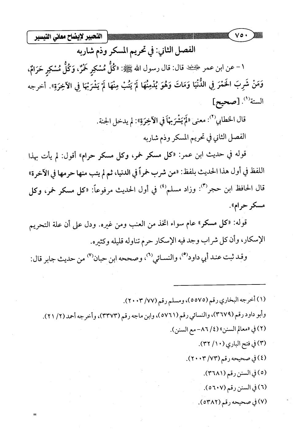 الفصل الثاني في تحريم المسكر وذم شاربه