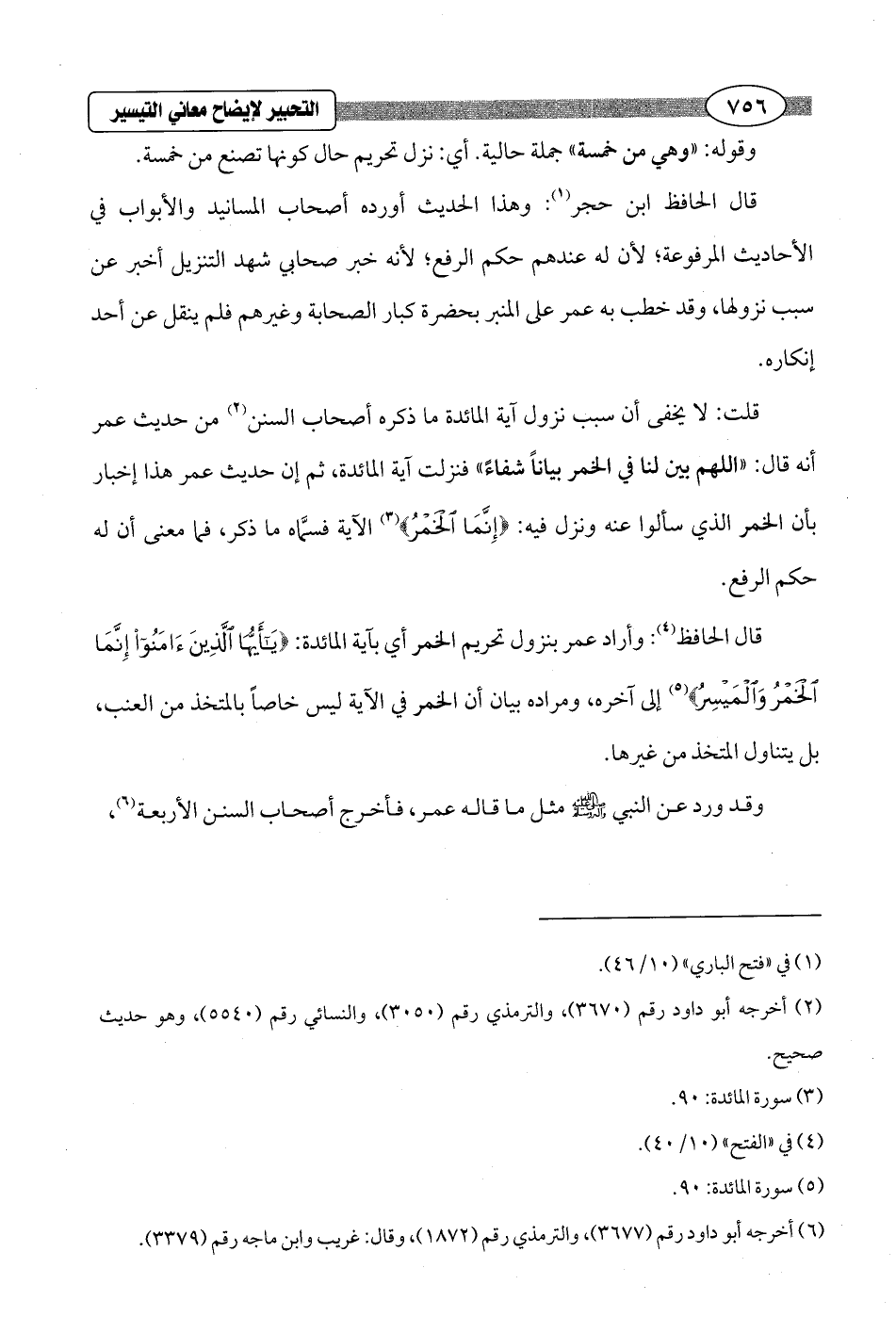 قلت: لا يخفى أن سبب نزول آية المائدة ما ذكره أصحاب السنن (¬2) من حديث عمر أنه قال: "اللهم بين لنا في الخمر بياناً شفاءً" فنزلت آية المائدة، ثم إن حديث عمر هذا إخبار بأن الخمر الذي سألوا عنه ونزل فيه: {إِنَّمَا الْخَمْرُ} (¬3) الآية فسمَّاه ما ذكر، فما معنى أن له حكم الرفع.