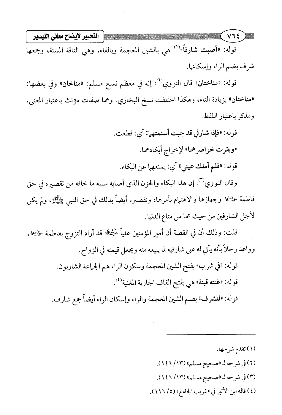 قلت: وذلك أن في القصة أن أمير المؤمنين علياً - عليه السلام - قد أراد التزوج بفاطمة - رضي الله عنها -، وواعد رجلاً بأنه يأتي له على شارفيه لما يبيعه منه ويجعل قيمته في الزواج.