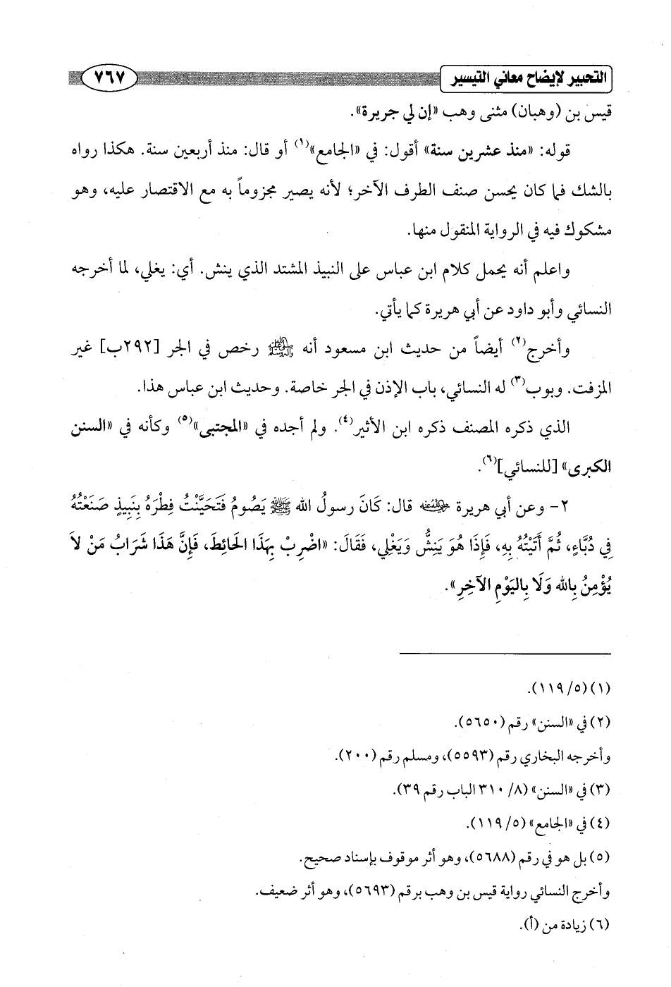 واعلم أنه يحمل كلام ابن عباس على النبيذ المشتد الذي ينش. أي: يغلي، لما أخرجه النسائي وأبو داود عن أبي هريرة كما يأتي.