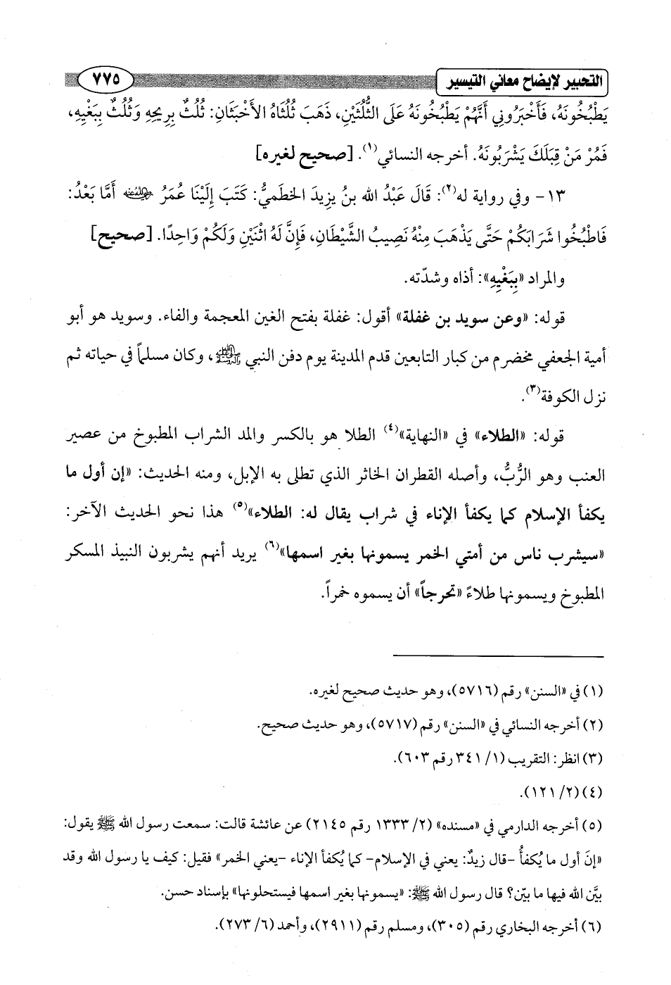 يَطْبُخُونَهُ، فَأَخْبَرُونِي أَنَّهُمْ يَطْبُخُونَهُ عَلَى الثُّلُثَيْنِ، ذَهَبَ ثُلُثَاهُ الأَخْبَثَانِ: ثُلُثٌ بِرِيحِهِ وَثُلُثٌ بِبَغْيِهِ، فَمُرْ مَنْ قِبَلَكَ يَشْرَبُونَهُ. أخرجه النسائي (¬1). [صحيح لغيره]