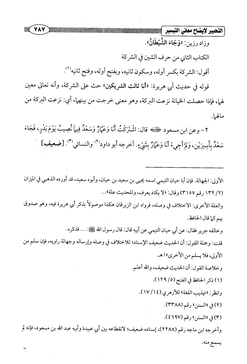 وزاد رزين: "وَجَاءَ الشَّيْطَانُ".