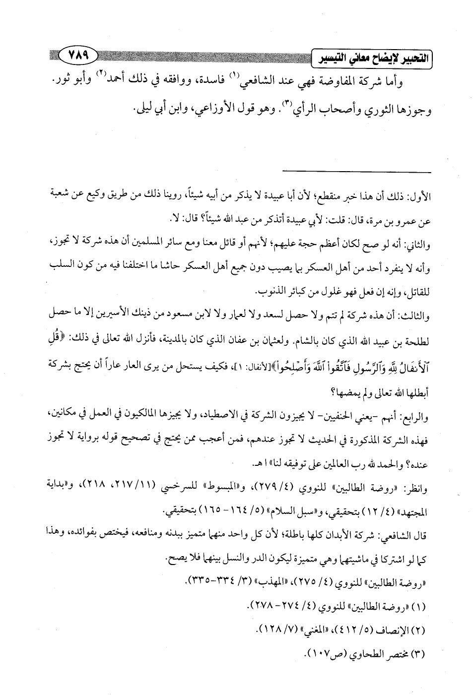 والثالث: أن هذه شركة لم تتم ولا حصل لسعد ولا لعمار ولا لابن مسعود من ذينك الأسيرين إلا ما حصل لطلحة بن عبيد الله الذي كان بالشام. ولعثمان بن عفان الذي كان بالمدينة، فأنزل الله تعالى في ذلك: {قُلِ الْأَنْفَالُ لِلَّهِ وَالرَّسُولِ فَاتَّقُوا اللَّهَ وَأَصْلِحُوا} [الأنفال: 1]، فكيف يستحل من يرى العار عاراً أن يحتج بشركة أبطلها الله تعالى ولم يمضها؟