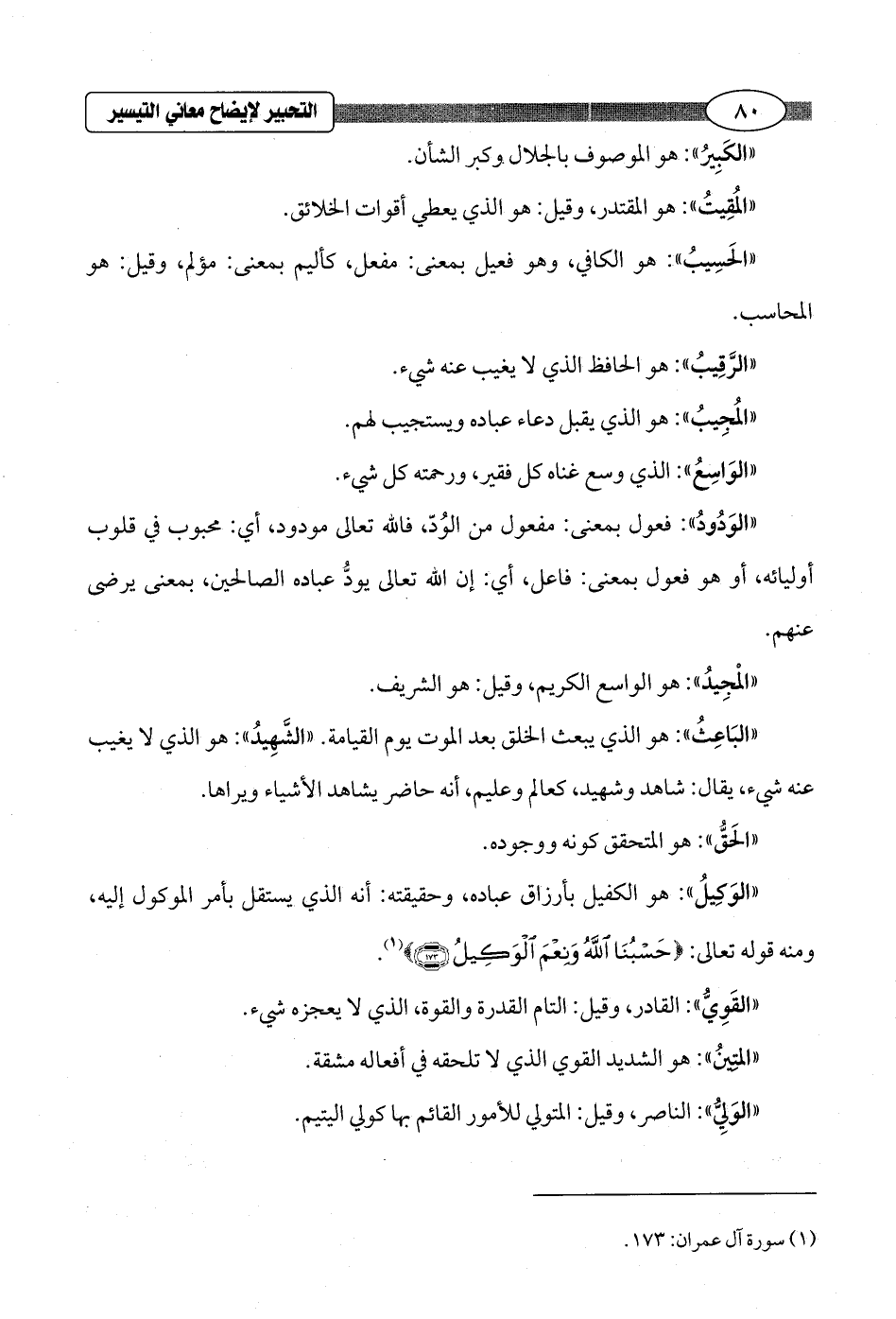 "البَاعِثُ": هو الذي يبعث الخلق بعد الموت يوم القيامة. "الشَّهِيدُ": هو الذي لا يغيب عنه شيء، يقال: شاهد وشهيد، كعالم وعليم، أنه حاضر يشاهد الأشياء ويراها.