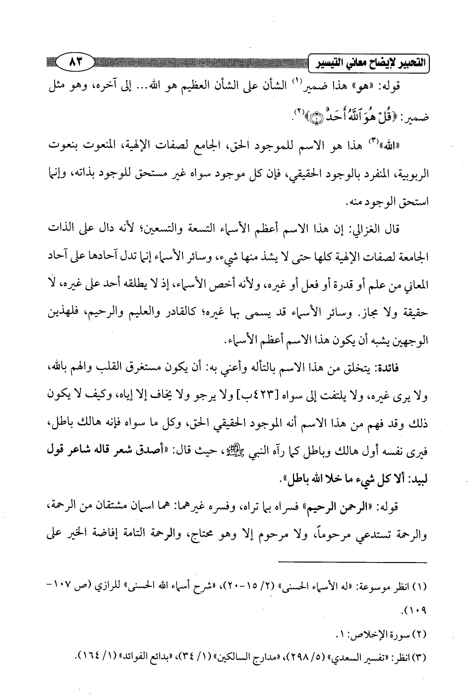 (¬3) انظر: "تفسير السعدي" (5/ 298)، "مدارج السالكين" (1/ 34)، "بدائع الفوائد" (1/ 164).