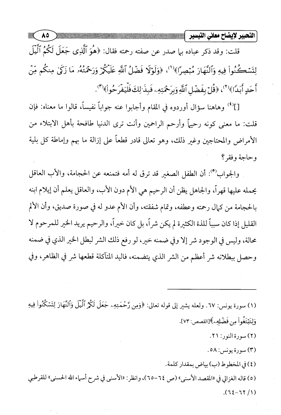 (¬5) قاله الغزالي في "المقصد الأسنى" (ص 64 - 65)، وانظر: "الأسنى في شرح أسماء الله الحسنى" للقرطبي (1/ 62 - 64).