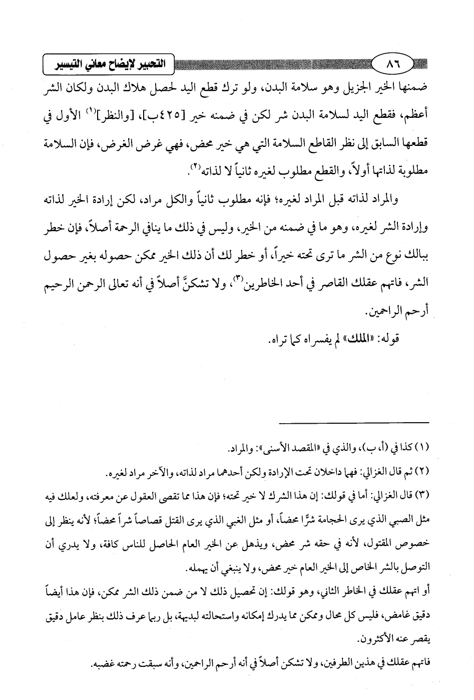 (¬2) ثم قال الغزالي: فهما داخلان تحت الإرادة ولكن أحدهما مراد لذاته، والآخر مراد لغيره.