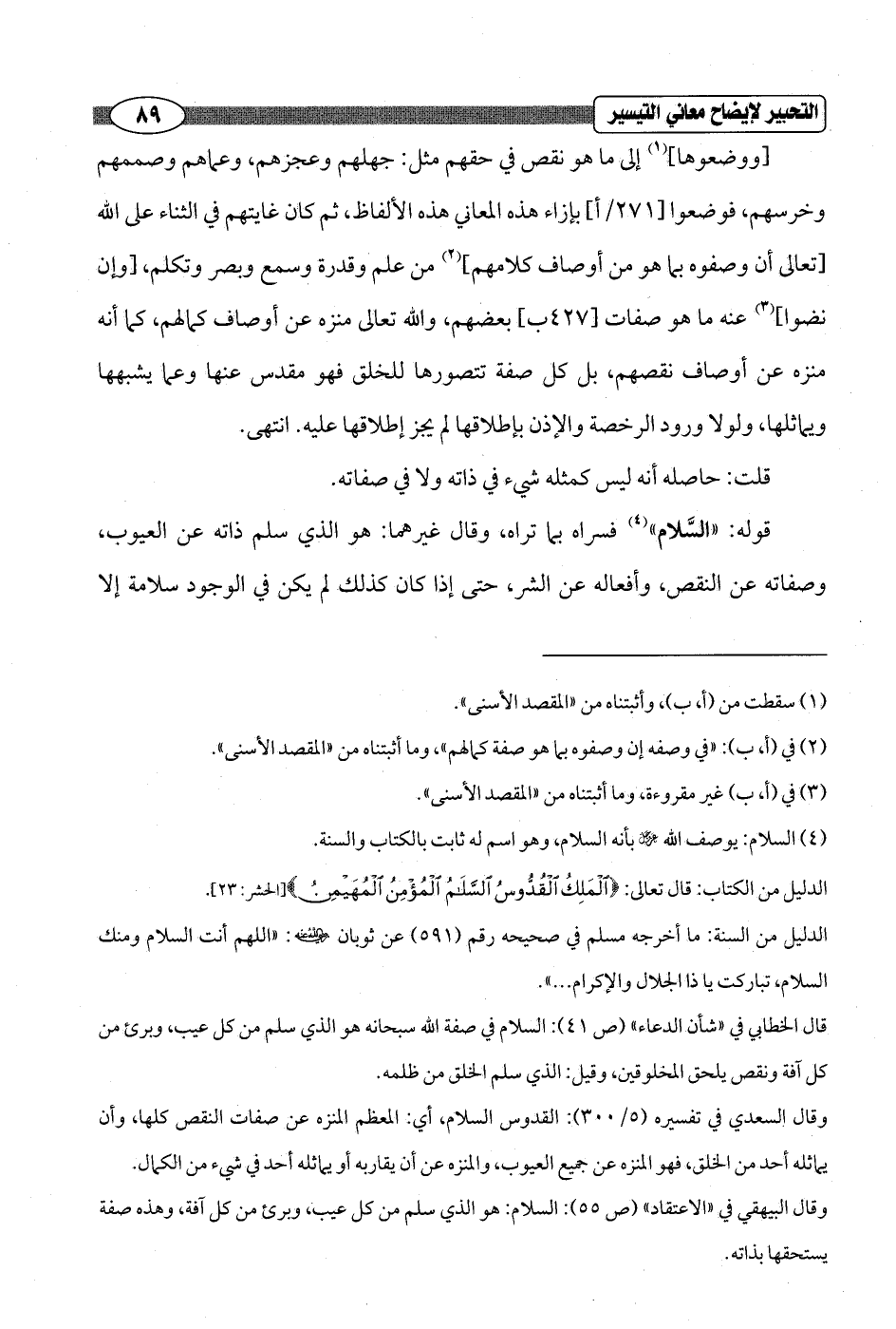 الدليل من الكتاب: قال تعالى: {الْمَلِكُ الْقُدُّوسُ السَّلَامُ الْمُؤْمِنُ الْمُهَيْمِنُ} [الحشر: 23].