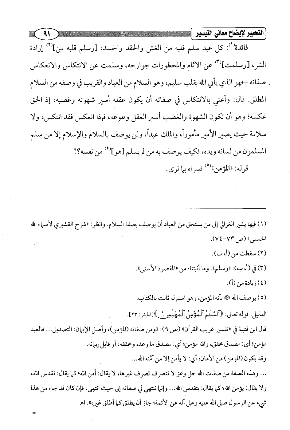 (¬1) فيها يشير الغزالي إلى من يستحق من العباد أن يوصف بصفة السلام. وانظر: "شرح القشيري لأسماء الله الحسنى" (ص 73 - 74).