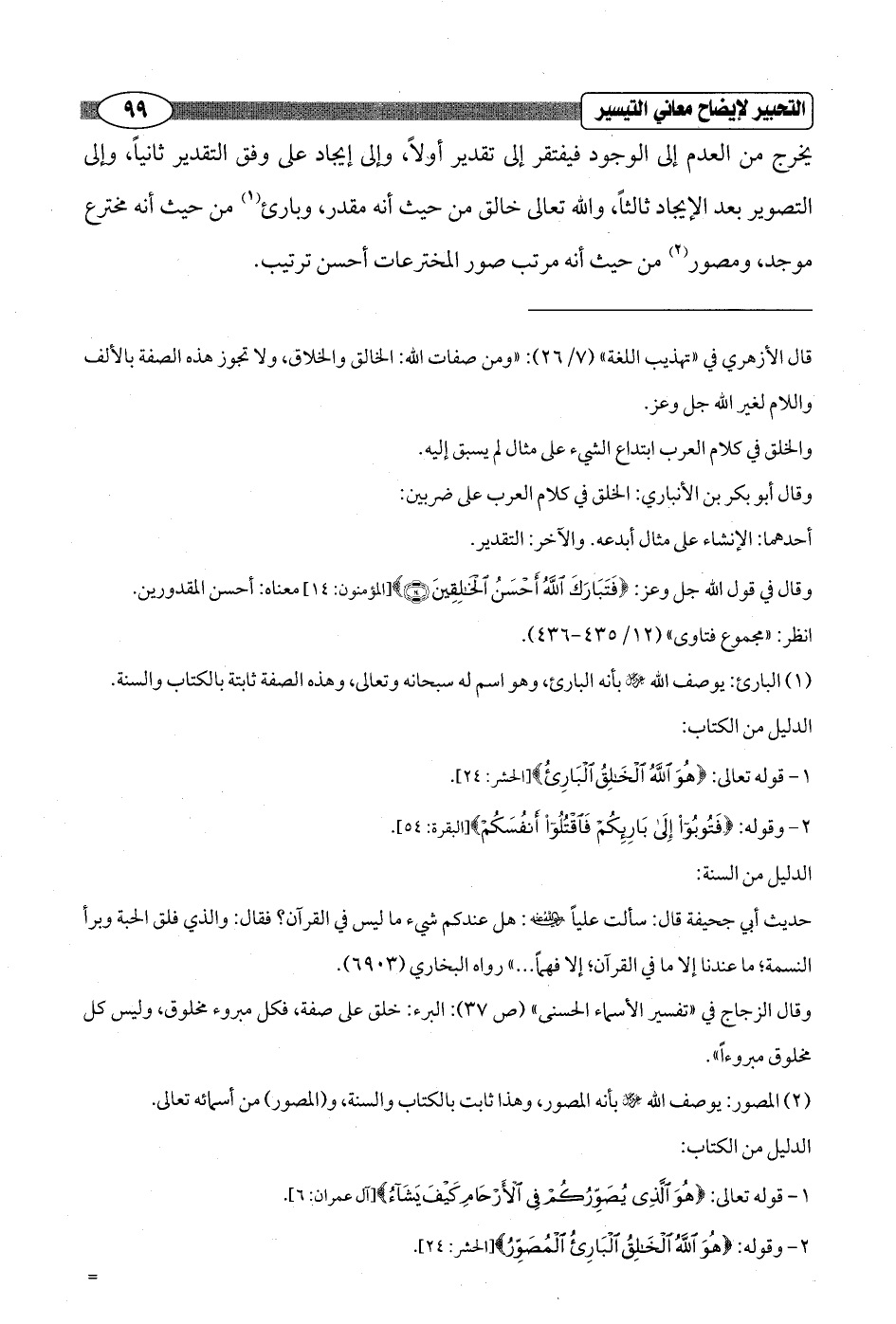 2 - وقوله: {هُوَ اللَّهُ الْخَالِقُ الْبَارِئُ الْمُصَوِّرُ} [الحشر: 24]. =