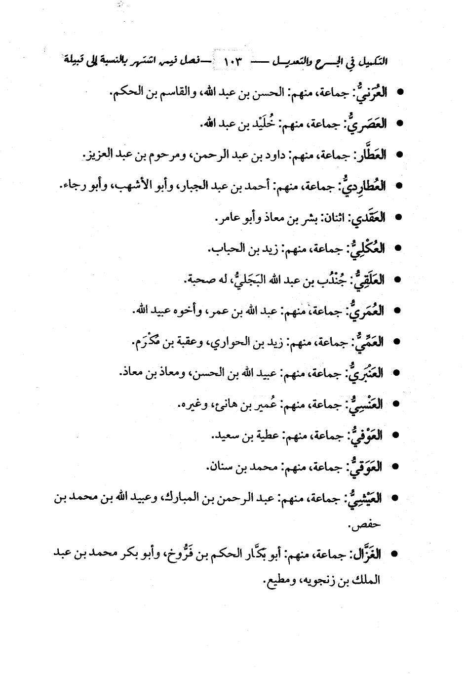 - العُكْلِيُّ: جماعة، منهم: زيد بن الحباب.