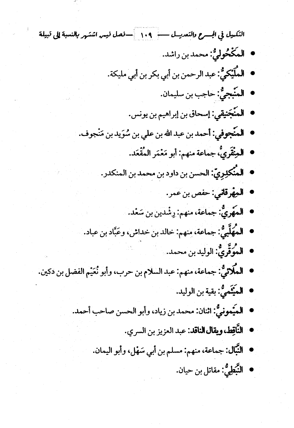 - النَّبّال: جماعة، منهم: مسلم بن أبي سَهْل، وأبو اليمان.