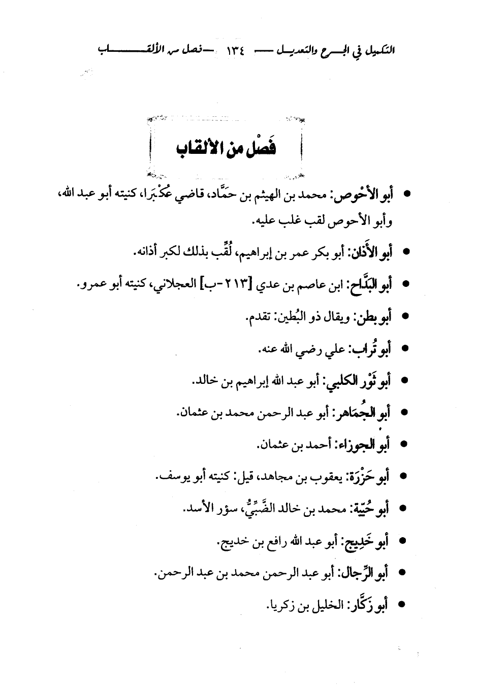 - أبو الأحْوص: محمد بن الهيثم بن حَمَّاد، قاضي عُكْبَرا، كنيته أبو عبد الله، وأبو الأحوص لقب غلب عليه.