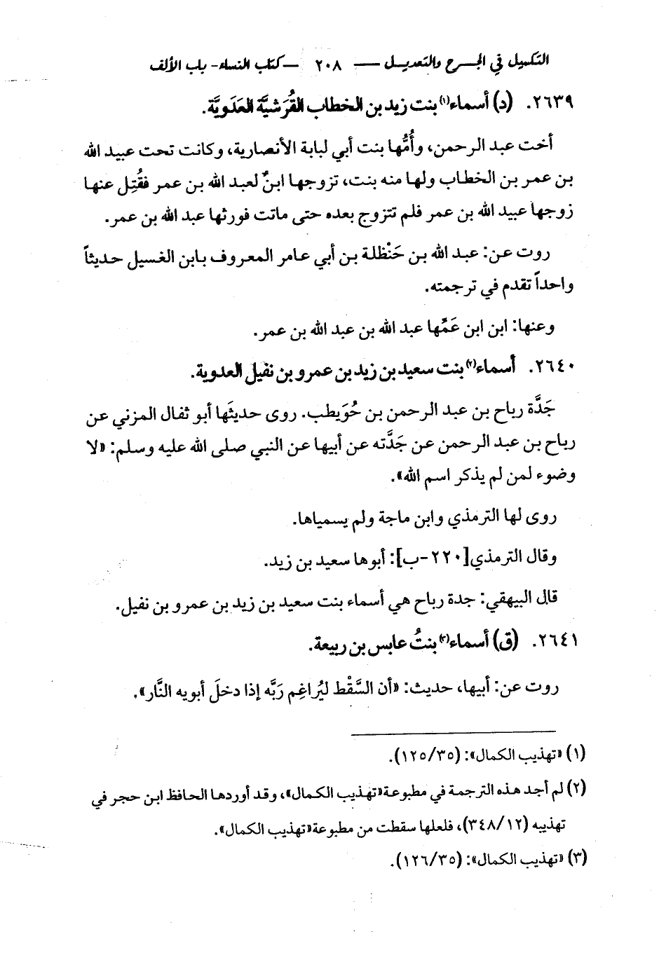 2639 - (د) أسماء (¬1) بنت زيد بن الخطاب القُرَشيَّة العَدَويَّة.