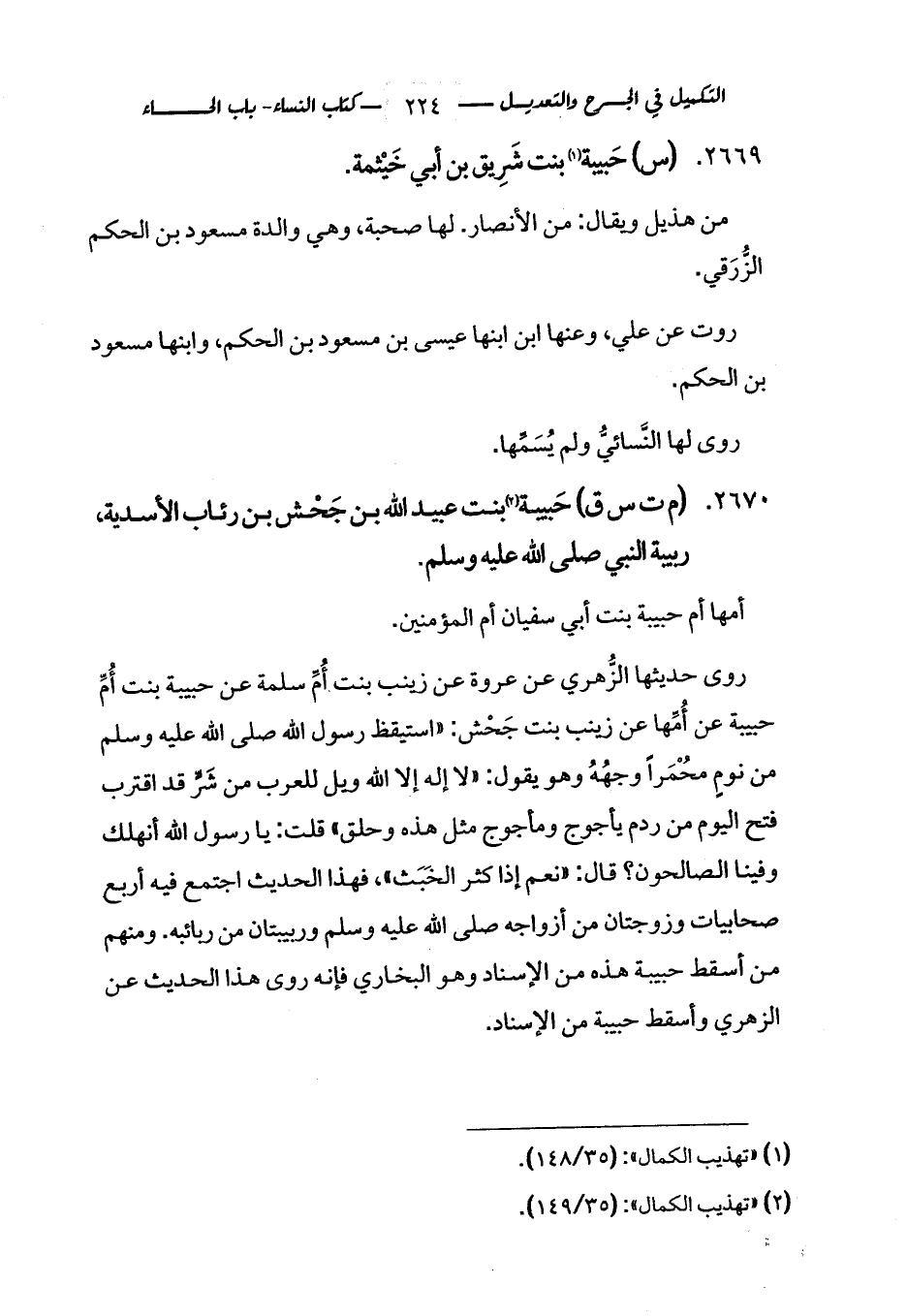 2670 - (م ت س ق) حَبيبة (¬2) بنت عبيد الله بن جَحْش بن رئاب الأسدية، ربيبة النبي صلى الله عليه وسلم.