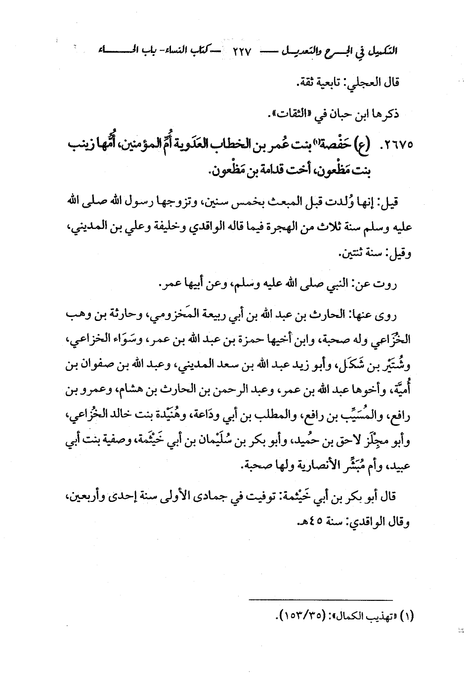 (¬1) «تهذيب الكمال»: (35/ 153).