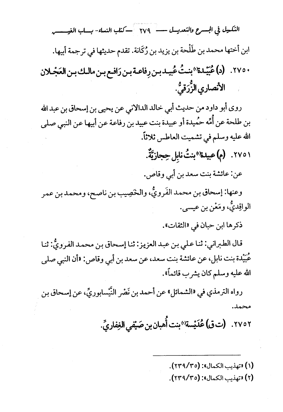2751 - (م) عبيدة (¬2) بنتُ نابِل حِجازيَّةٌ.