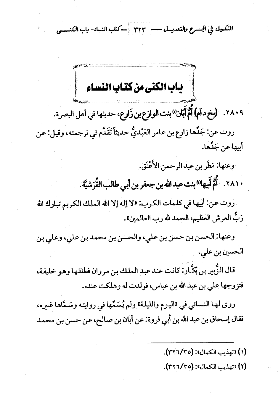 باب الكنى من كتاب النساء