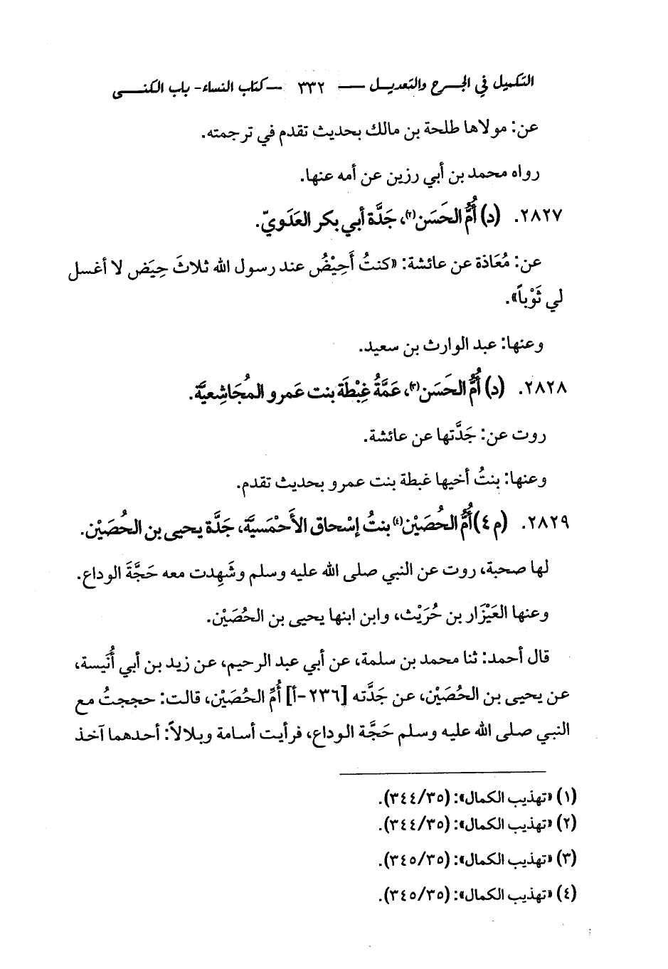 2829 - (م 4) أُمُّ الحُصَيْن (¬3) بنتُ إسْحاق الأَحْمَسيَّة، جَدَّة يحيى بن الحُصَيْن.