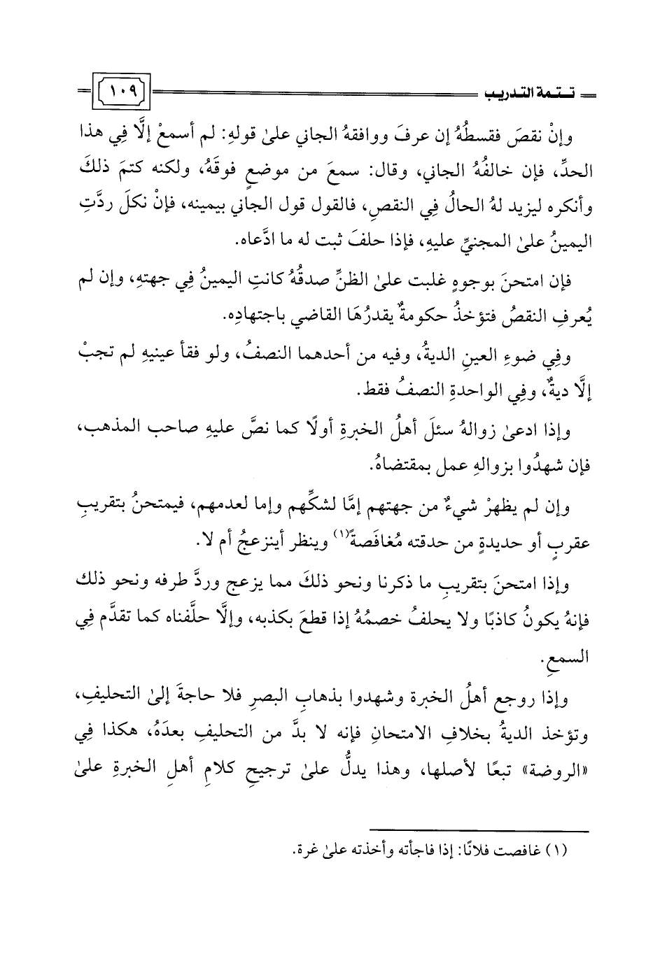 وإذا روجع أهلُ الخبرة وشهدوا بذهابِ البصرِ فلا حاجةَ إلى التحليفِ، وتؤخذ الديةُ بخلافِ الامتحانِ فإنه لا بدَّ من التحليفِ بعدَهُ، هكذا في "الروضة" تبعًا لأصلها، وهذا يدلُّ على ترجيحِ كلامِ أهلِ الخبرةِ على