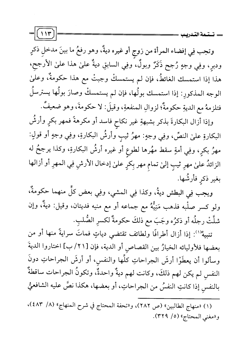 (¬1) "منهاج الطالبين" (ص 282)، و"تحفة المحتاج في شرح المنهاج" (8/ 483)، و"مغني المحتاج" (5/ 329).