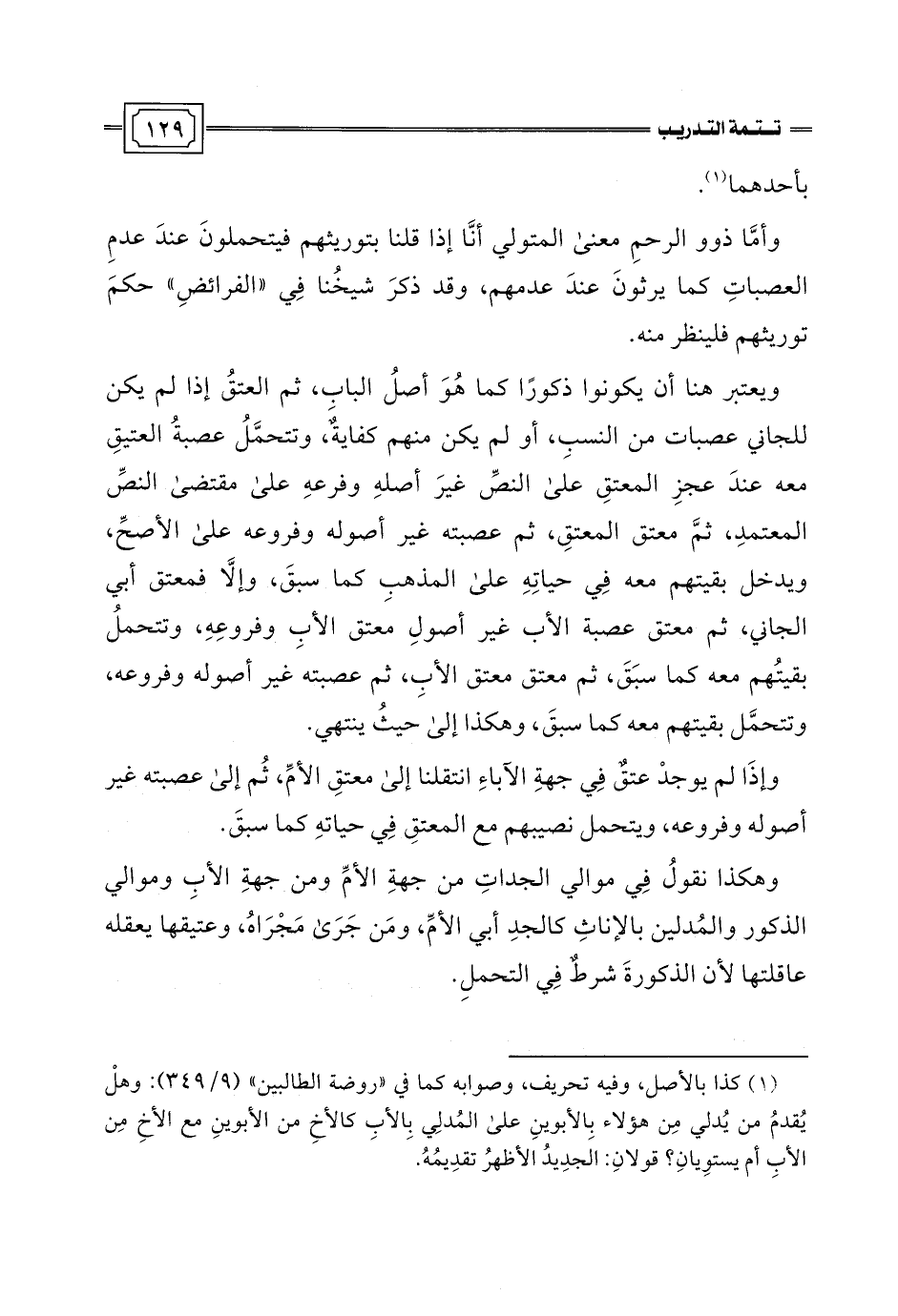 (¬1) كذا بالأصل، وفيه تحريف، وصوابه كما في "روضة الطالبين" (9/ 349): وهلْ يُقدمُ من يُدلي مِن هؤلاء بِالأبوينِ على المُدلِي بِالأبِ كالأخِ من الأبوينِ مع الأخِ مِن الأبِ أم يستوِيانِ؟ قولانِ: الجدِيدُ الأظهرُ تقدِيمُهُ.