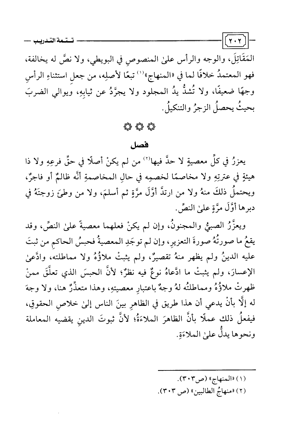 (¬2) "منهاجُ الطالبين" (ص 303).