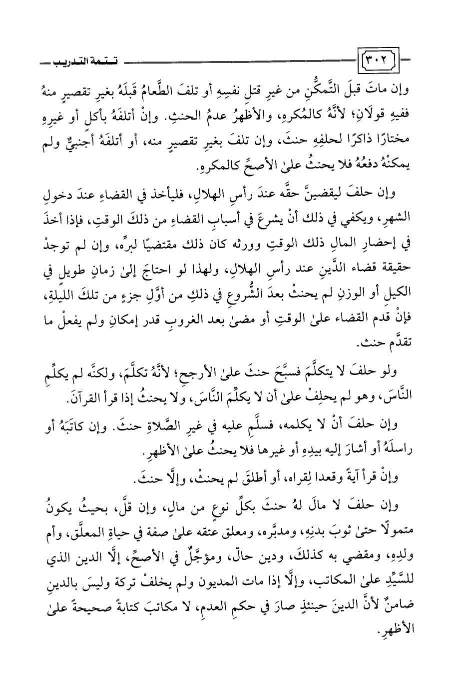 وإن حلفَ لا مالَ لهُ حنثَ بكلِّ نوعٍ من مالٍ، وإن قلَّ، بحيثُ يكونُ متمولًا حتى ثوبَ بدنِهِ، ومدبَّره، ومعلق عتقه على صفة في حياةِ المعلَّق، وأم ولدِهِ، ومقضي به كذلكَ، ودين حالّ، ومؤجَّلٌ في الأصحِّ، إلَّا الدين الذي للسَّيِّدِ على المكاتب، وإلَّا إذا مات المديون ولم يخلفْ تركة وليسرَ بالدينِ ضامنٌ لأنَّ الدينَ حينئذٍ صارَ في حكمِ العدمِ، لا مكاتبَ كتابةً صحيحةً على الأظهرِ.