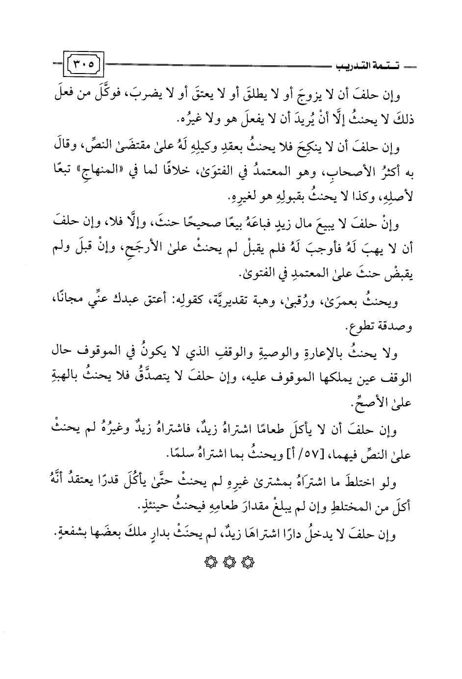 وإن حلفَ لا يبيعَ مال زيدٍ فباعَهُ بيعًا صحيحًا حنثَ، وإلَّا فلا، وإن حلفَ أن لا يهبَ لَهُ فأوجبَ لَهُ فلم يقبلْ لم يحنثْ على الأرجَحِ، وإنْ قبلَ ولم يقبضْ حنثَ على المعتمدِ في الفتوى.