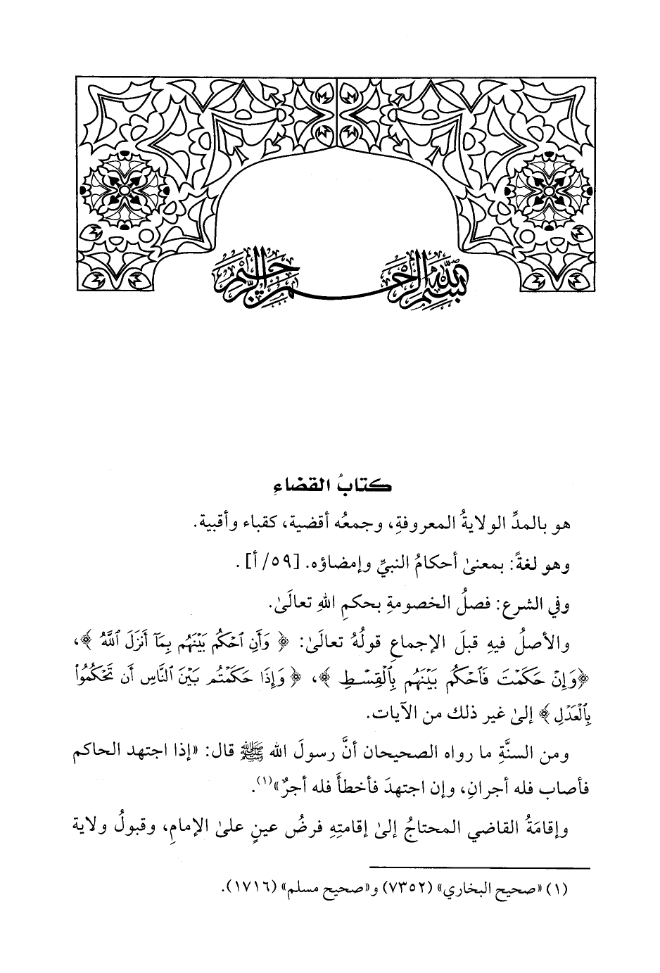 ومن السنَّةِ ما رواه الصحيحان أنَّ رسولَ اللَّه -صلى اللَّه عليه وسلم- قال: "إذا اجتهد الحاكم فأصاب فله أجرانِ، وإن اجتهدَ فأخطأَ فله أجرٌ" (¬1).