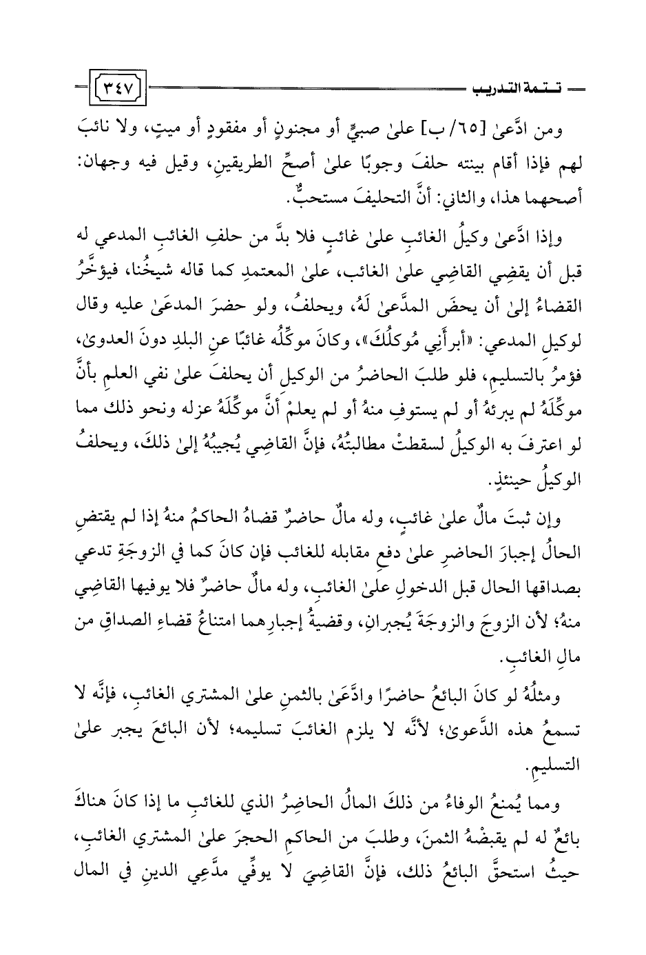 ومثلُهُ لو كانَ البائعُ حاضرًا وادَّعَى بالثمنِ على المشتري الغائبِ، فإنَّه لا تسمعُ هذه الدَّعوى؛ لأنَّه لا يلزم الغائبَ تسليمه؛ لأن البائعَ يجبر على التسليمِ.