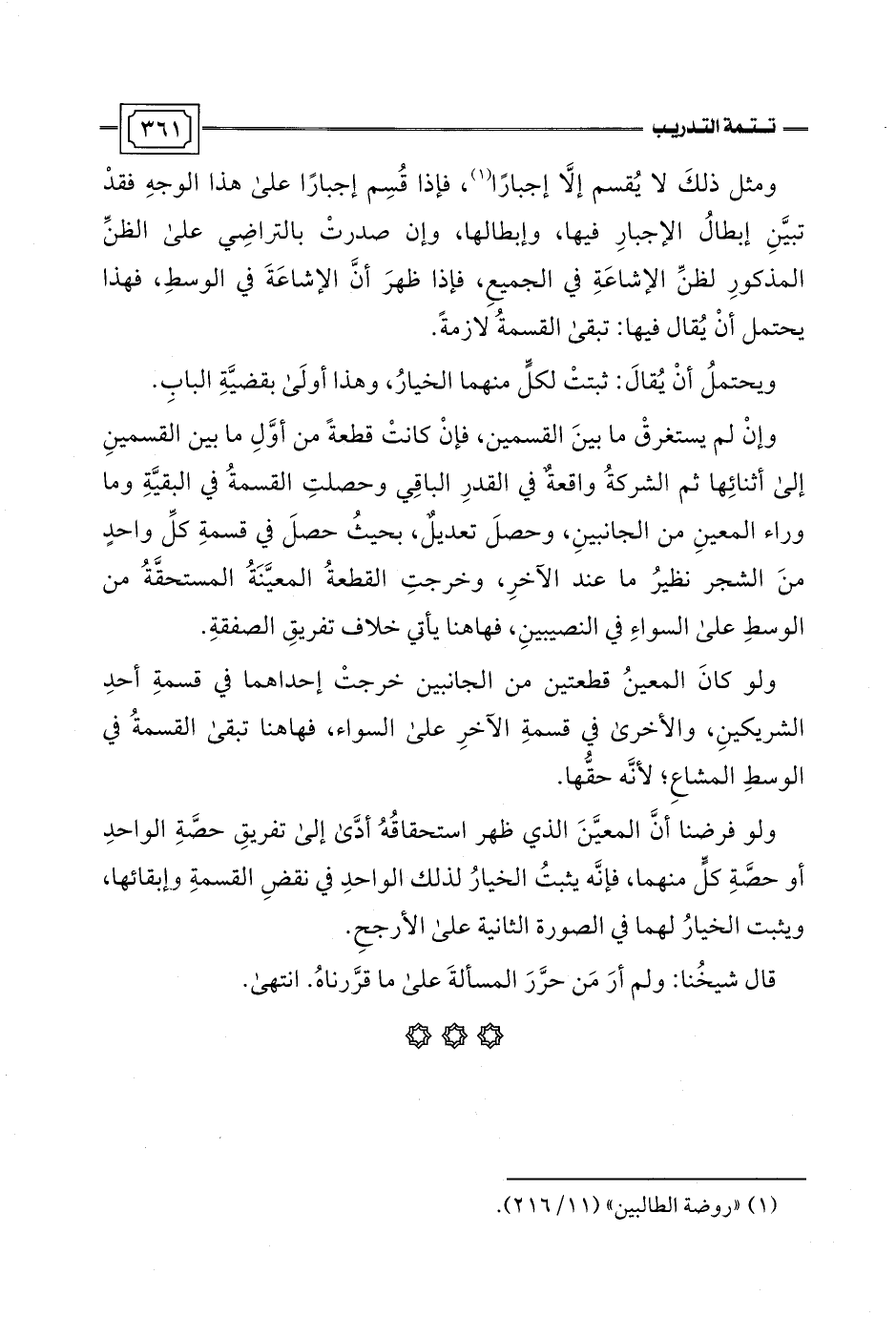 قال شيخُنا: ولم أرَ مَن حرَّرَ المسألةَ على ما قرَّرناهُ. انتهى.