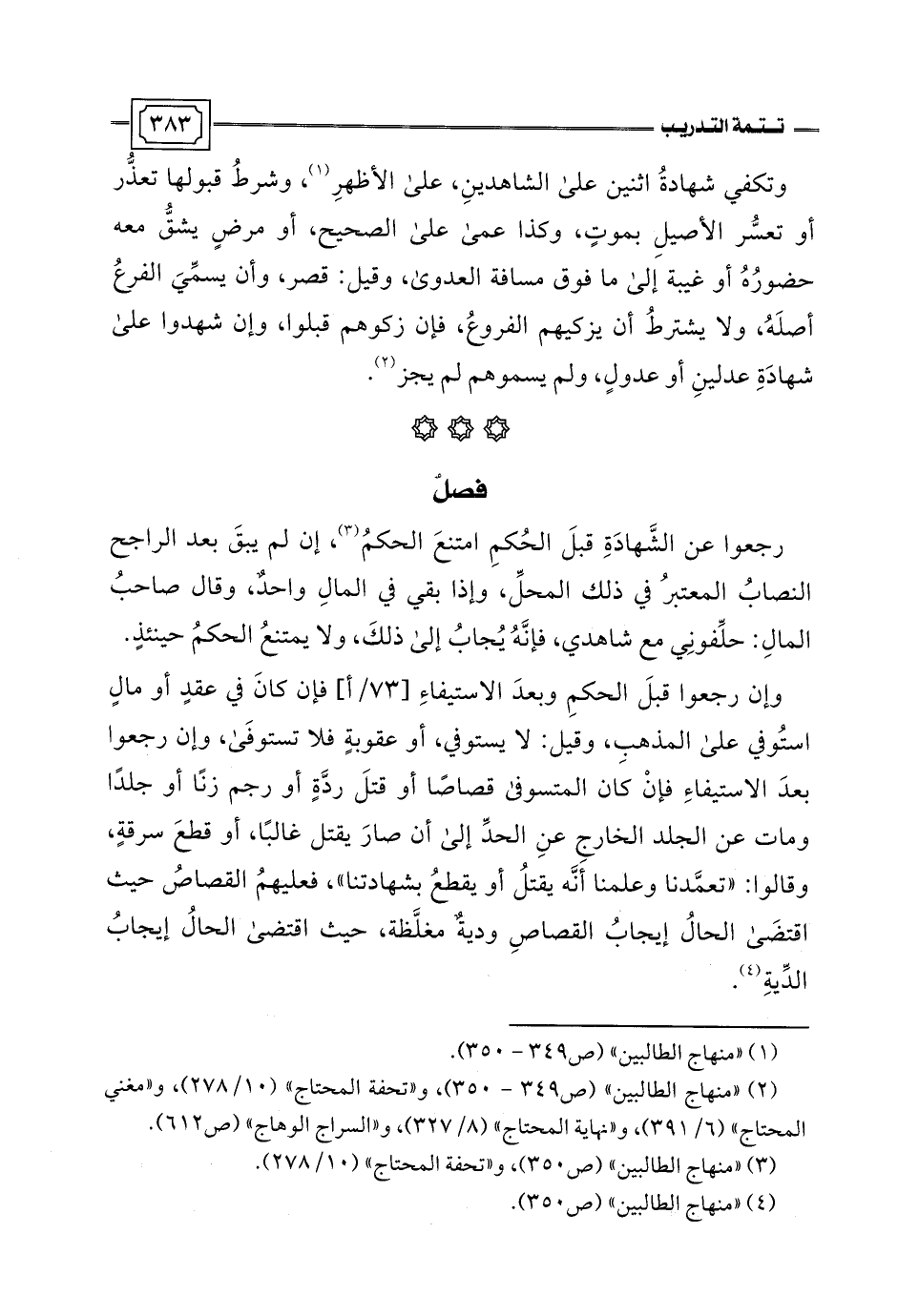 (¬1) "منهاج الطالبين" (ص 349 - 350).