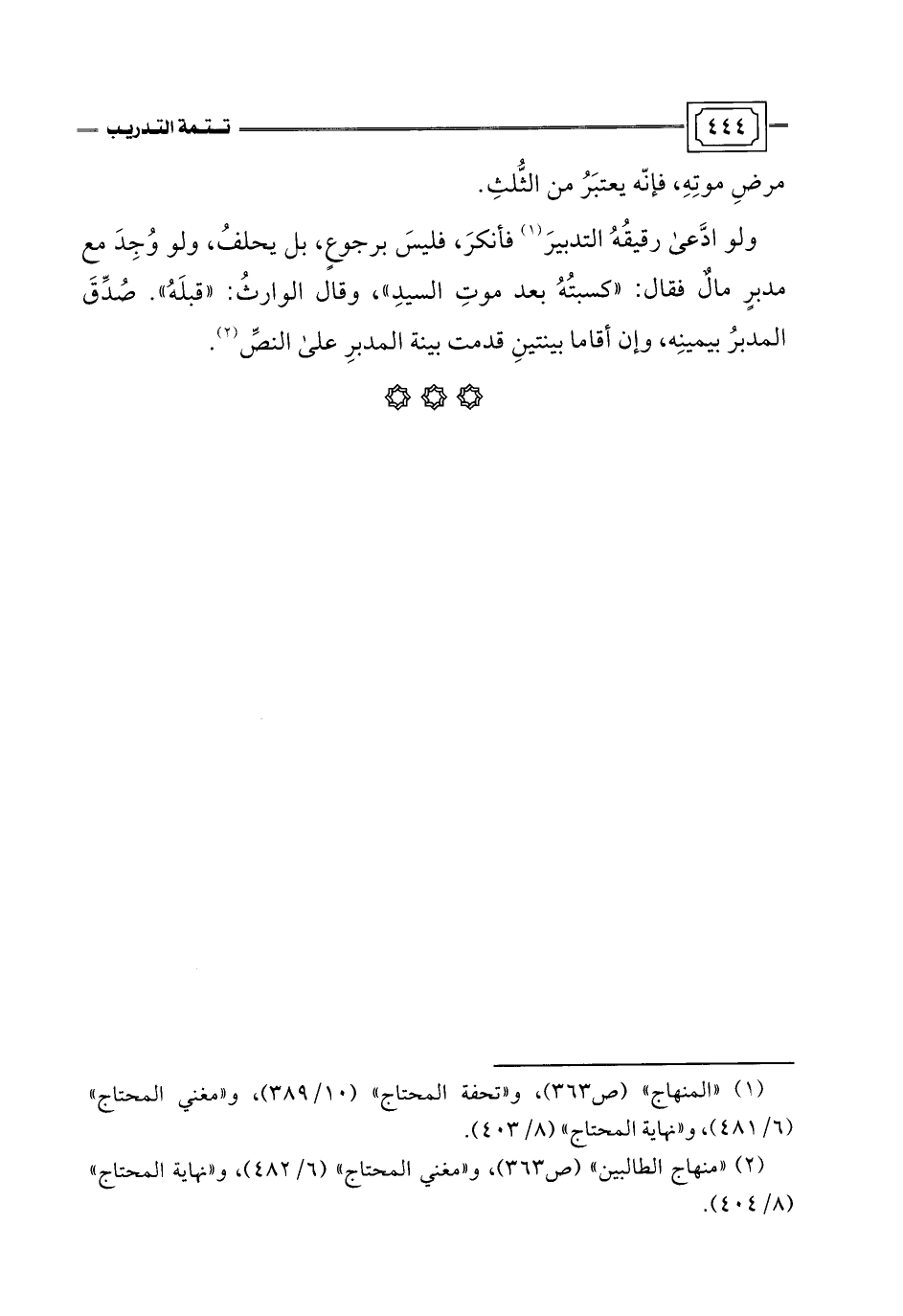 (¬2) "منهاج الطالبين" (ص 363)، و"مغني المحتاج" (6/ 482)، و"نهاية المحتاج" (8/ 404).