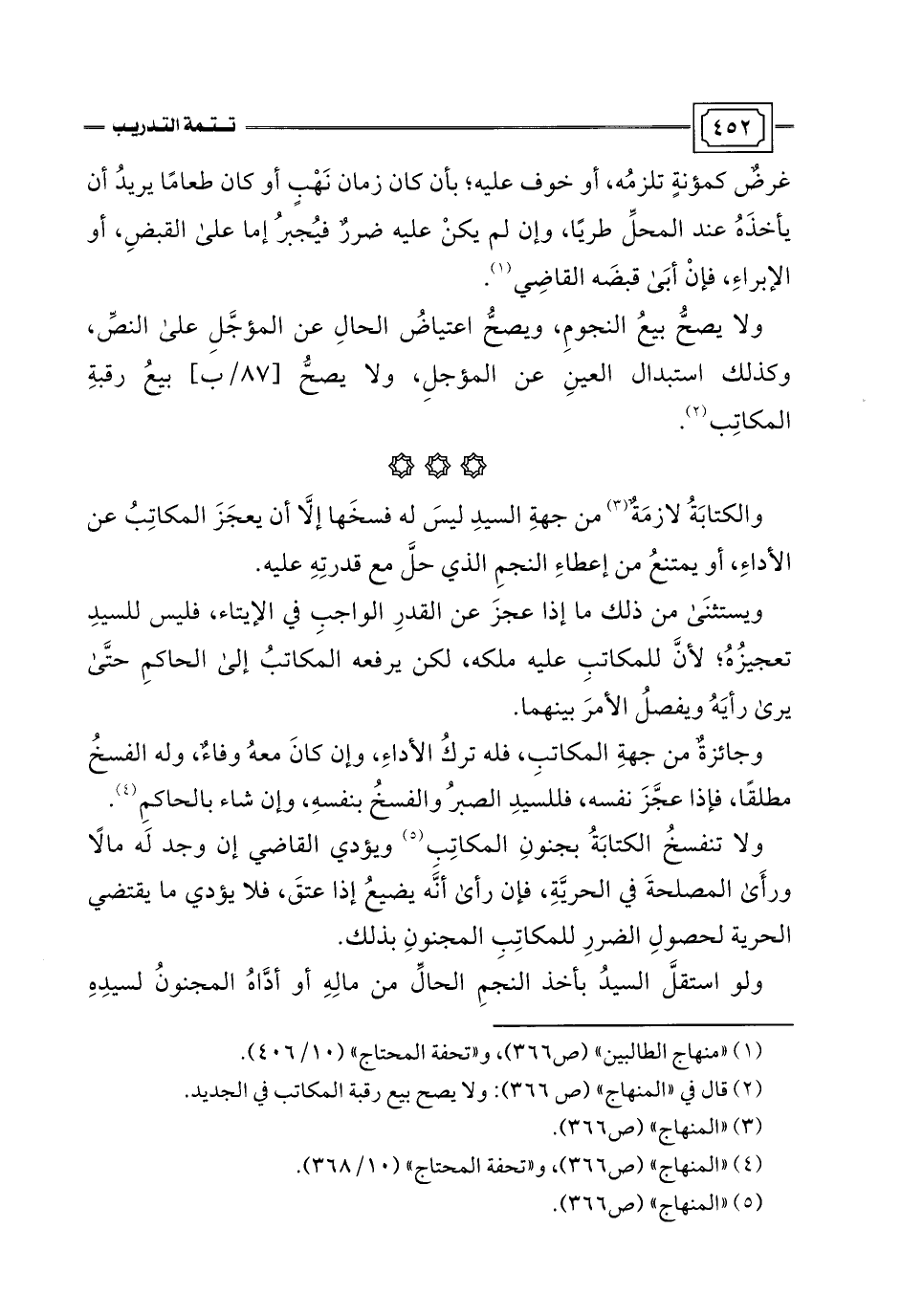 (¬2) قال في "المنهاج" (ص 366): ولا يصح بيع رقبة المكاتب في الجديد.