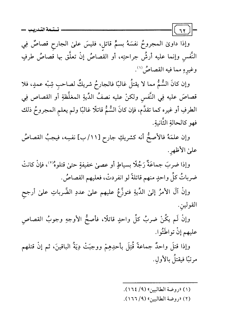 وإنْ آلَ الأمرُ إلى الدِّيةِ فتوزَّعُ عليهم على عددِ الضَّرباتِ على أرجحِ القولينِ.