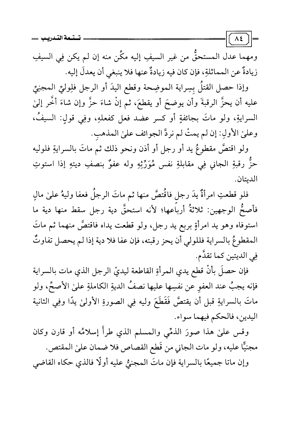 وقس على هذا صورَ الذمِّي والمسلم الذي طرأَ إسلامُه أو قارن وكان مجنيًّا عليه، ولو مات الجاني من قَطع القصاص فلا ضمان على المقتص.